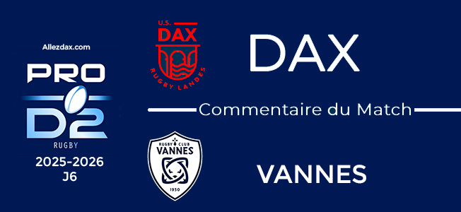 Malgré une partie solide à tous points de vue, l’USDax s’est inclinée ce jeudi soir face à l’ogre vannetais, candidat légitimement déclaré à la remontée en Top14. Une défaite frustrante tant l’engagement de l’équipe a été sans faille durant 80 minutes.