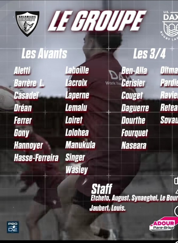 Concernant le pilier droit pour Colomiers il semblerait que ce soit LOLOHEA qui soit titulaire, à voir jeudi pour confirmation.