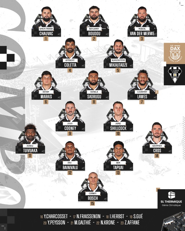 Comme la saison précédente, chez les lignes arrière du 9 au 15, c'est passable, à l'exception de Gatelier qui est égal à lui-même et une suite prometteuse avec Ben Alla. Allez Dax !
