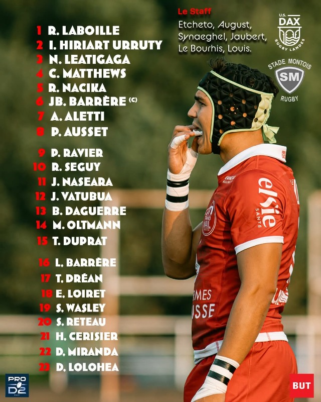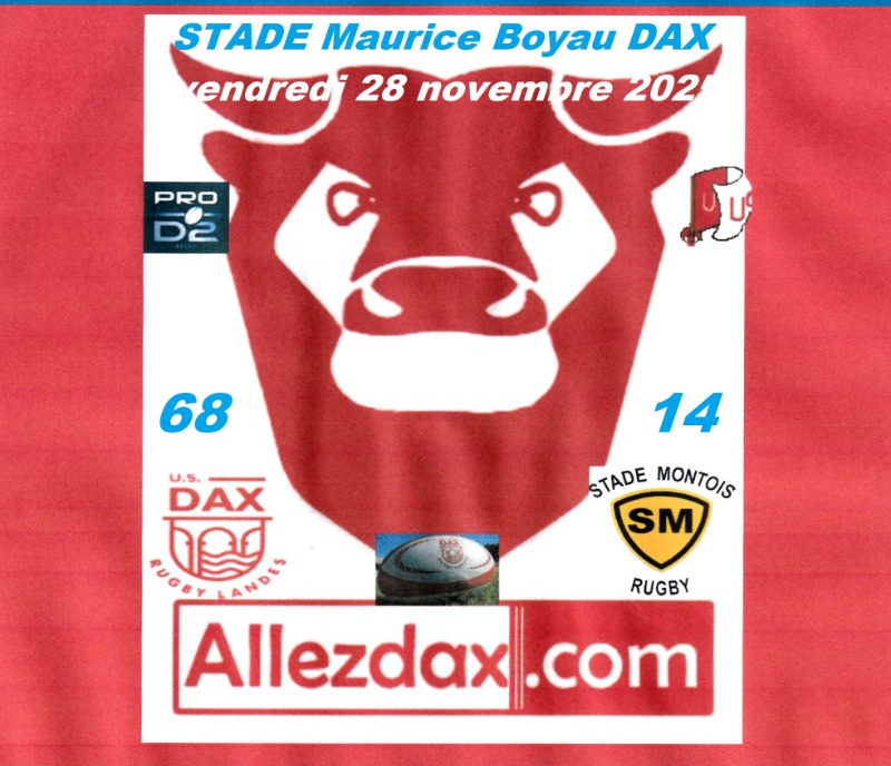 Mille bravos et félicitations pour nos 23 joueurs Dacquois et staf, quelle victoire, quel score (je n'ai pas souvenir de pareil score obtenu par une équipe Dacquoise en match de championnat de France) devant, il est vrai, des montois trés faibles !