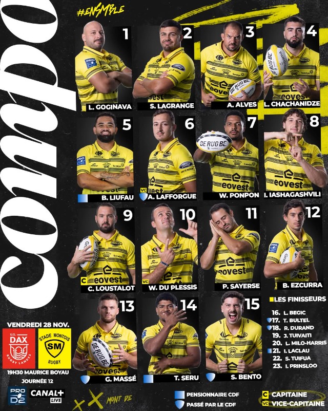 Je me régale de voir qu'en 2025 dans ce derby pro, au milieu de joueurs arrivant de partout, ben on a encore des "enfants du pays" pour qui le derby veut vraiment parler: Laclau, Duprat, Gatelier, Reteau, Barrère... Ça se chambre, ça va chicaner dans les rucks en se relevant en prenant appui sur la tête d'un montois, et à la fin ça va se taper dans les mains et ça fera encore des anecdotes.