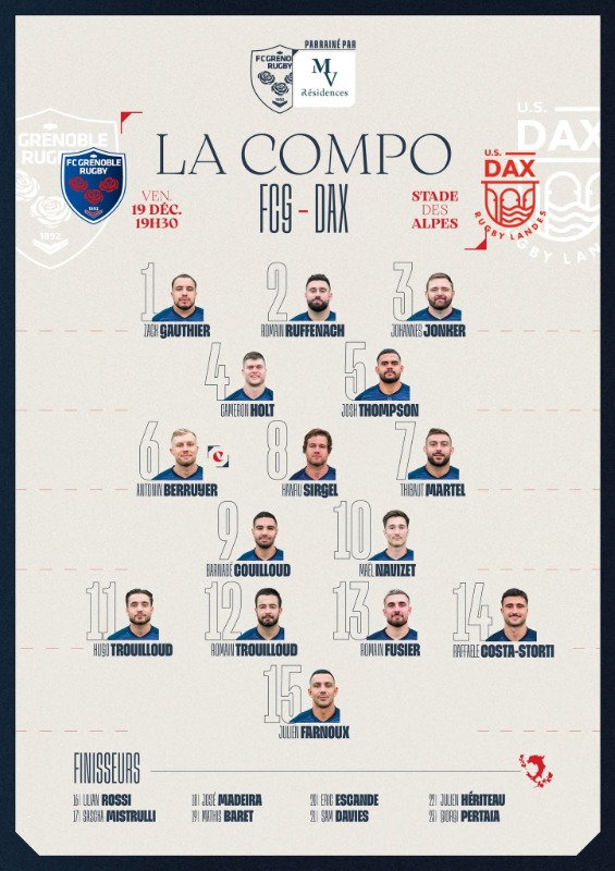 Je n'ai pas vu le match . Je retiendrai le point de bonus à Grenoble, performance remarquable dans le contexte actuel et en étant mené 24/5 à la pause. Bravo les gars , vous faites honneur à notre club.