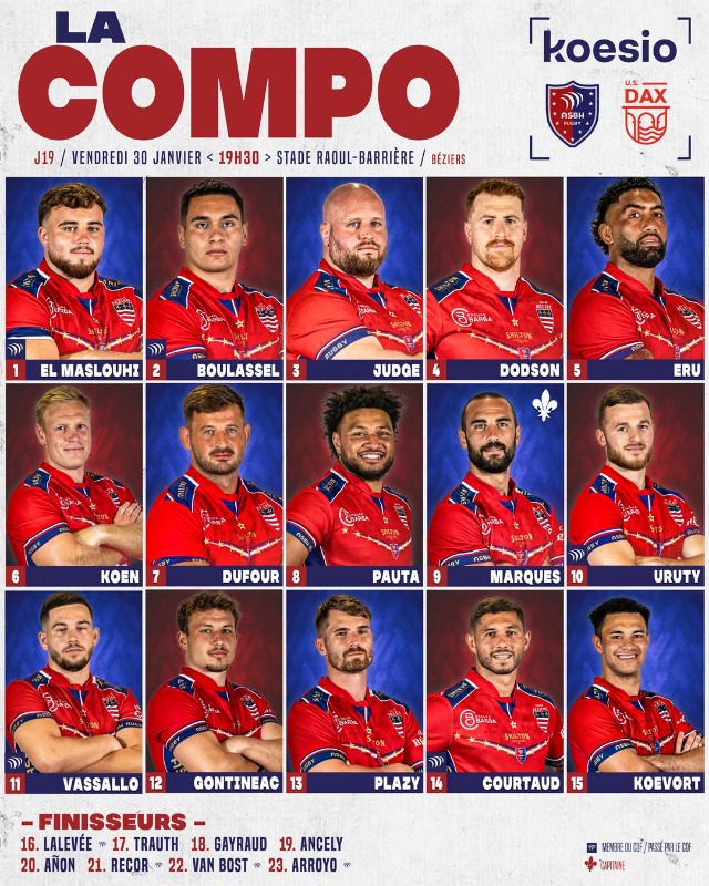 Difficile de déterminer les titulaires pour Beziers mais il semblerait qu'il y ait pas mal de changements par rapport aux derniers matchs.
