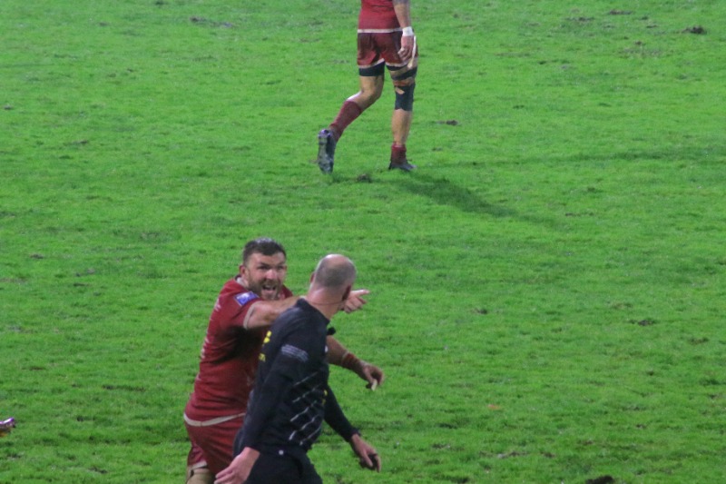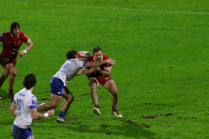 Hier soir déjà, des conditions météorologiques déplorables qui forcément impactent sur le jeu. Un terrain hyper gras, des crampons lourds d'eau, des rafales de vent dans la gueule, un ballon glissant, des appuis rendus hyper difficiles... Cela valait pour les deux équipes, et on peut certes regretter le BO mais en face on a quand même Aurillac, une équipe des plus rugueuses de ce ProD2, et plus d'une équipe se serait effondrée à domicile en reprise de bloc. Pas nous, ça fait 4 points de plus et les gars peuvent être fiers.