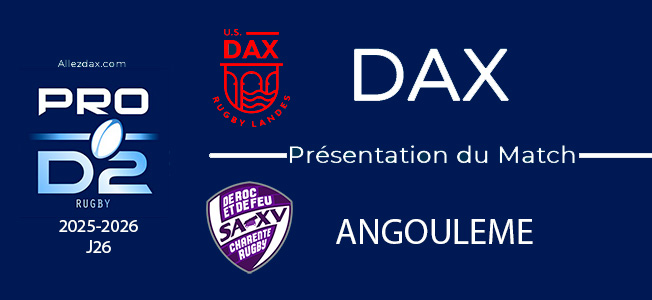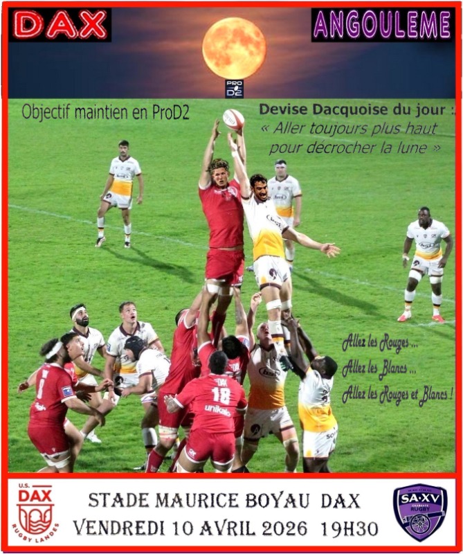 Dax-Angoulême ProD2 J/26 Stade Maurice Boyau vendredi 10 avril 2026 /19H 30