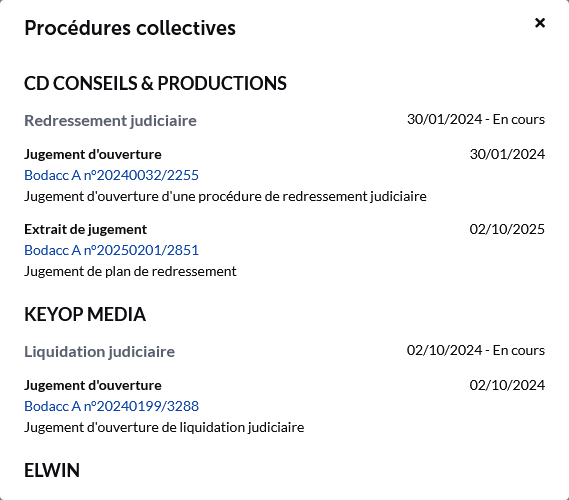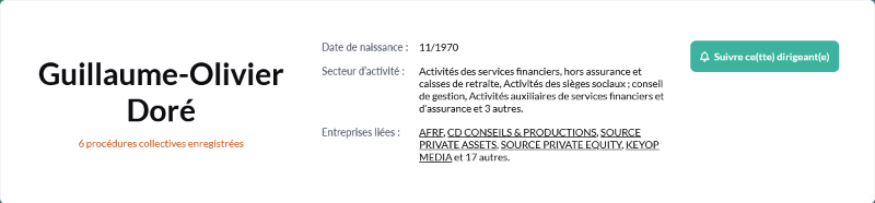 Ce qui fait se poser question, notamment sur le cas de M. Doré, et ce que ne t'as pas dit l'IA, ce sont les 6 procédures collectives qui ont été prononcées sur des sociétés lui appartenant.