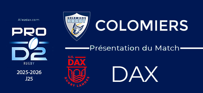 A l’évidence du classement, Dax actuel avant-dernier barragiste, n’a que peu de chance de gagner ce match à Colomiers tout récent vainqueur à Provence le 3ième du championnat … Pourtant, Dax devra jouer son rugby, celui qui lui a permis de dominer largement Grenoble vendredi dernier ou Provence le mois précédent à Bayonne … Accrocher un bonus défensif, voilà un point précieux supplémentaire qui capitaliserait déjà une bonne affaire pour le classement !